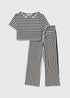Girls Black Mono Stripe Wed Leg Trousers & Top Set (7-13yrs)