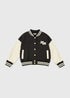 Learn moreA classic, stylish piece that adds an athletic and trendy touch to any outfit, this jacket is crafted with comfort and style in mind and is perfect for keeping your young one warm and fashionable. The jacket features a varsity style, predominantly black with contrasting cream sleeves. It boasts a ribbed collar, cuffs, and hem with black and white stripes, adding to the sporty aesthetic. Whether she's heading to school, a playdate, or a weekend outing, this jacket combines fashion and function effortlessly. Let her express her unique style while staying cosy and cool!