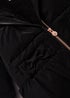 Make sure your little one staves off those seasonal chills with this jacket, fashioned with soft puffer fabric. In a classic black base colour, the peplum hem adds a feminine twist, while the chic gold zip fastening makes on/off a doddle. A protective hood, snug cuffs and two beautiful bows finish the design.