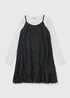 Add a touch of effortless style to her wardrobe with this Girls Black Polka Dot Crinkle 2-in-1 Dress, a cute and comfortable outfit for any occasion. Designed with a mock 2-in-1 look, this dress features a white long-sleeve top layered under a black crinkle dress with a playful white polka dot print. Made from soft, lightweight fabric, it’s gentle on her skin and perfect for all-day wear.
