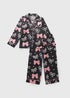 Girls Black Satin Bow Pyjama Set (4-12yrs)