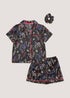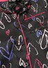 Girls Black Satin Heart Button Up Pyjama & Scrunchie Set (4-13yrs)