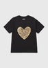 Girls Black Sequin Leopard Heart T-Shirt (7-15yrs)