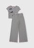 Girls Black Stripe Bow T-Shirt & Trousers Set (7-15yrs)