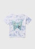 Girls Blue Acid Wash Butterfly T-Shirt (7-15yrs)