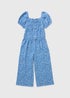 Girls Blue Crinkle Floral Jumpsuit (7-15yrs)