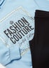 Learn moreElevate their loungewear game with this delightful girls' hoodie and flares set, ideal for moments of relaxation, reading, or cosy movie marathons. The light blue hoodie offers a soft and luxurious feel, adorned with a chic 'Fashion Couture' foil print embellished with sparkling rhinestones for a touch of glamour. With a snug hood and warm cuffed sleeves, it provides both style and comfort. The ensemble is completed by the black ribbed leggings, designed with a stretchy fit and a playful flare beyond the knees. This set combines comfort, style, and a dash of sophistication, making it perfect for your child's lounging adventures.