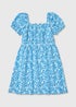Girls Blue Floral Crinkle Dress (7-13yrs)