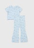Girls Blue Flower Rib Top & Flare Set (1-7yrs)