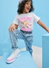 These blue jeans feature heart-shaped pockets, adding a delightful and playful detail to the design. Crafted for both comfort and style, these jeans are perfect for casual outings and playdates. The heart-shaped pockets create a whimsical and charming look, making these jeans a fun and fashionable choice for any little trendsetter.