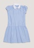 Girls Blue Knitted Collar Gingham School Dress (3-14yrs)