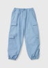 These pants feature a vibrant blue hue and are designed with both fashion and practicality in mind. With 4 utility flap pockets and 2 regular pants pockets, these bottoms provide ample storage space while maintaining a chic look. Crafted for comfort and versatility, these parachute pants are perfect for active days or simply expressing her unique style.
