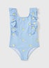 Girls Blue Stripe Lemon Frill Swimming Costume (1-7yrs)