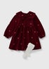 Girls Burgundy Flower Embroidered Cord Dress & Tights Set (1-7yrs)