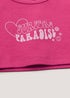 Add a splash of colour to her summer wardrobe with this vibrant Gold Coast themed crop top. Crafted from soft stretch ribbed fabric, the hot pink top is finished with a heart graphic to the front, captioned ‘Surfers Paradise’. Slim straps and a scoop neckline complete the design.