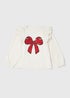 Girls Cream Bow Print Frill Long Sleeve T-Shirt (9mths-6yrs)