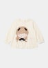 It doesn't get much sweeter for everyday dressing than this classic cream T-shirt. Printed with a graphic of a lovely girl, which consists of gorgeous silver glitter and two small velvet bows for added interest, it's finished with frills to the long sleeves and neckline. Partner the look with leggings.