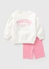 Girls Cream Positive Sweatshirt & Cycling Shorts Set (1-7yrs)