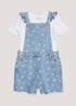 Learn moreCute and classic, this denim dungarees and T-shirt set is perfect for summer dressing. Crafted from 100% cotton, the light-wash dungarees feature the signature pinafore silhouette, complete with frill straps, pocket styling and a delicate printed appearance. A white cotton-stretch tee is also included to be layered beneath.