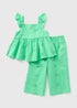 Girls Green Embroidered Co Ord Top & Trousers Set (1-7yrs)