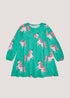 Girls Green & Pink Unicorn Long Sleeve Dress (4-13yrs)