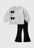 Girls Grey Bow Sweatshirt & Flared Leggings Set (1-7yrs)