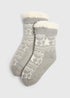 Girls Grey Fairisle Slipper Socks (Younger 6-Older 6.5)