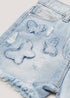Girls Mid Wash Butterfly Denim Shorts (4-13yrs)