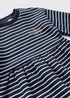 Learn moreWith its charming stripe design, this navy stripe sweater dress is perfect for your little one's everyday adventures. Crafted from a cosy cotton-rich blend, it's gentle on delicate skin and will keep them feeling snug all day long. The dress features a classic crew neckline, long sleeves, and a regular fit for effortless comfort and style. With a navy stripe all over and a HAPPY print on the chest, this dress is an adorable addition to your little one's wardrobe. Perfect for any occasion, pair with tights for a warmer wear.