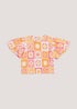 Perfect for summer dressing, this bold number will keep her cool and comfy, all the while looking super cute. Styled with a striking floral crochet patchwork print, the crinkle textured top combines a mix of orange, pink, yellow and white for a vibrant finish. Simple crew neck styling and flouncy frill sleeves complete the dazzling design.