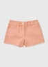 Our Girls Peach Denim Shorts is a must-have for your girl's summer wardrobe. Crafted from high-quality, durable denim, these shorts are designed to withstand all of her adventures. The cute peach hue and versatile design make these shorts perfect for pairing with a variety of tops, from tees to tanks to blouses.