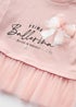 Learn moreAdd a touch of ballerina beauty to your little one's wardrobe with our delightful Girls Pink Ballerina Mesh Top in a delicate shade of light pink. Crafted from the softest materials, this tee offers all-day comfort, allowing her to twirl and dance without a care in the world. Featuring a cute ballerina slogan, detailed with a mesh bow and skirt. Pair it with a tulle skirt and ballet flats for a complete ballerina look or team it with denim shorts and sneakers for a relaxed, everyday outfit.