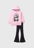 Learn moreGet your little ballerina ready to twirl and leap in our delightful pink ballet hoodie and flares set. Designed in a charming shade of sweet pink and the matching black bottoms, this two-piece set will make your child the star of any occasion. The black ribbed flares create a comfortable look while ensuring this set is stylish. While the ballet design on the front further adds a touch of style to add to your little one's love for this set. Pair this set together or pair the hoodie with jeans and the flares with an oversized t-shirt for a variety of cool outfits for any occasion.