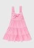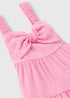 Girls Pink Bow Detail Crinkle Tiered Dress (1-7yrs)