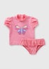 Learn moreSplash into summer fun with our vibrant pink butterfly tankini. This stylish tankini is designed with playful puff sleeves and frill scalloped ruffle detailing on the bottoms, adding a touch of style to your little one's beach day. With a zip from the neck it is easy to get off after splashing in the water and can be styled with the butterfly poncho for a cool set look.
