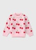 Girls Pink Cherry Knit Jumper (1-7yrs)