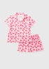 Learn moreLooking for the perfect summer pyjamas for your little one? Girls Pink Cherry Pyjama Set this adorable set is made from lightweight soft material and features a sweet pink cherry print. The button-up top has a classic collar and short sleeves, while the shorts have an elastic waistband for a comfortable fit. Perfect for summer lounging.