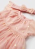 Learn moreIntroducing the Girls Pink Chiffon Occasion Dress, a delightful outfit designed to make your little one feel like a princess during special moments. Crafted from soft and lightweight chiffon fabric in a lovely shade of pink, this dress features flutter sleeves for an adorable touch. The matching headband with mesh bow completes the look, while the pleated skirt ensures volume and movement—perfect for twirling and dancing,