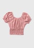 Girls Pink Crinkle Broderie Crinkle Milkmaid Top (7-15yrs)