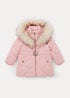 Learn moreMake sure your little one is wrapped up warm when heading back to school in this adorable fur-lined coat. Created with snuggly diamond quilt fabric in a pink colourway, it's trimmed with cosy faux fur detailing to the hood. Meanwhile, the stretchy ribbed cuffs come with sparkle for added interest. To finish, the coat is belted with a buckle fastening and comes with front pockets for added practicality.