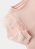 In pale pink, this soft and snuggly sweatshirt is sure to prettify just about any child's wardrobe. With frilly mesh detailing to the shoulders that's sure to catch their eye, it's finished with a ribbed texture to the neckline, cuffs and hem. Just partner with joggers or leggings and they'll be good to go.