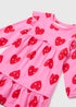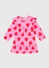 Make a sweet addition to her collection with this pink dress. Crafted from soft and stretchy cotton blend jersey, it features long sleeves, frill detail, a round neckline and is finished with a heart print to the front for added charm.