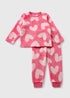 Girls Pink Heart Fleece Top & Bottoms Pyjama Set (1-7yrs)
