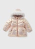 Learn moreThe peplum showerproof coat in pink iridescent is a must-have for your little fashionista this season. This eye-catching coat features a vibrant pink iridescent finish that's sure to make your little one feels cool wherever they go. The pink fur lined hood with white fur trim further adds some cool detailing with the rose gold detailing and heart shaped zip making this the coat of the season. The ruched waist ensures the perfect fit while the 2 functioning pockets ensure this coat combines practicality and style during the cooler months.