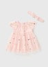 Girls Pink Mesh Foil Dress & Headband (Newborn-23mths)
