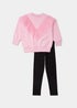 Learn moreAdd a more playful touch to casual collections with this set. Crafted from soft fabric, the snuggly pink sweatshirt is rounded off with cosy cuffed sleeves and gorgeous organza detailing at the front - styled in a V shape. It's perfectly contrasted by the black pair of leggings, featuring a generous amount of stretch for easy movement all day long.