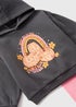 - Charcoal hoodie with front print of smiley face pumpkins