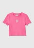Girls Pink Ribbed Cut Out Palm Tree T-Shirt (7-15yrs)