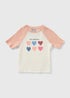 Girls Pink Ringer Hearts T-Shirt (7-15yrs)