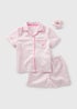 Girls Pink Satin Shortie Pyjama & Scrunchie Set (4-13yrs)